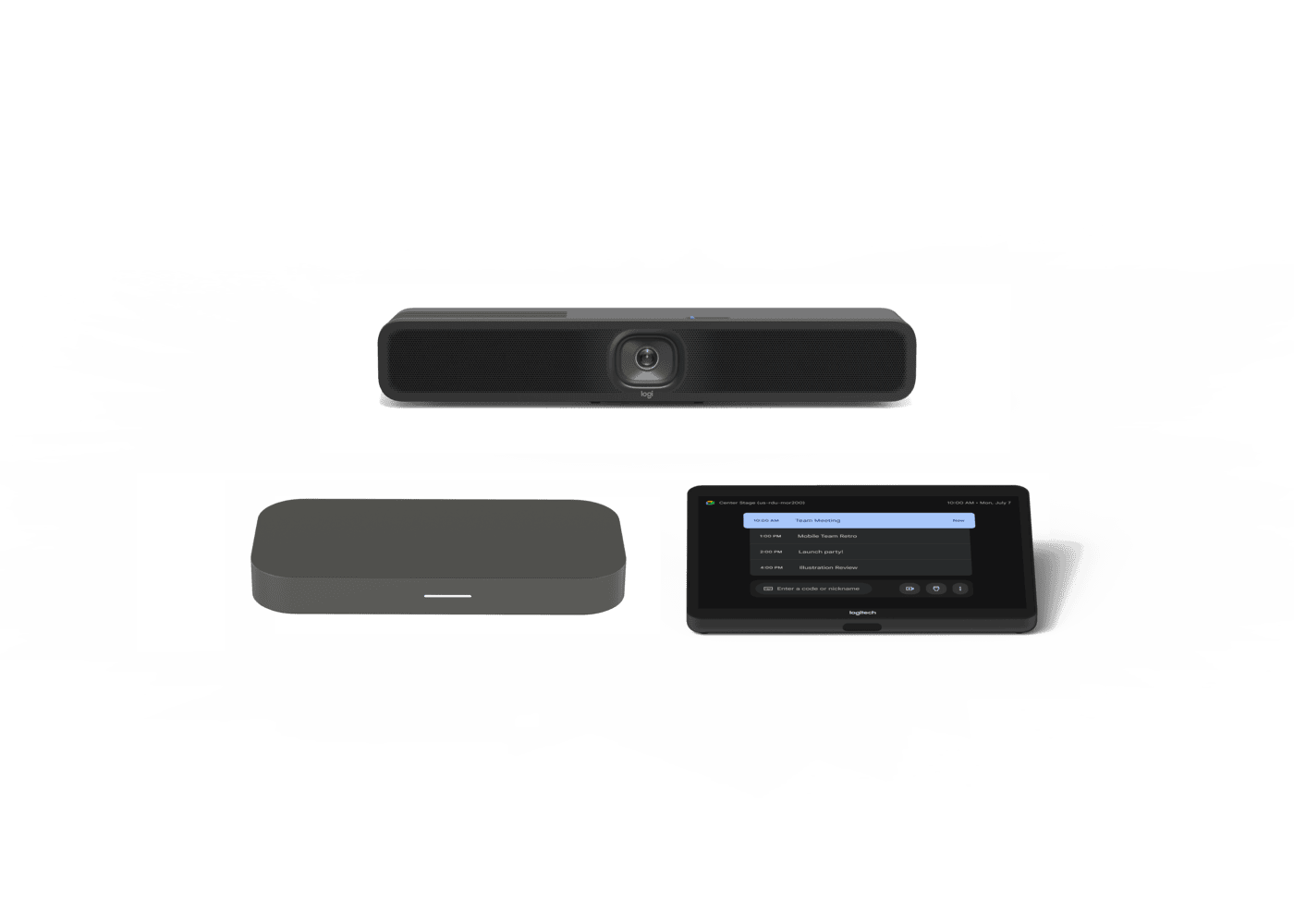 Logitech Tap har en 10,1" berøringsskærm, lydløs drift og kabler og kabelstyring i kommerciel kvalitet. MeetUp 2 er optimeret til de siddepladser og den akustik, der findes i mindre lokaler, og monteres ved skærmen og leverer HD-video og klar lyd til alle deltagere i mødet.
